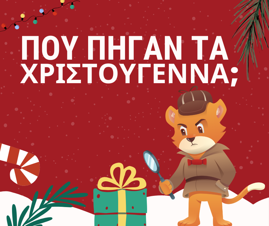 Τα παιδιά γίνονται ντέντεκτιβ και μυστικοί πράκτορες και ακολουθούν έναν γάτο που ψάχνει να βρει πού πήγαν τα Χριστούγεννα. “Πού πήγαν; Από πού έρχονται; Πού ακριβώς τα βρίσκει κανείς; Στα καταστήματα με τα παιχνίδια; Στις στολισμένες πλατείες; Στις γιορτές των μεγάλων ξενοδοχείων; Ή μήπως κάπου που δεν πάει το μυαλό μας, ενώ είναι τόσο απλό;”. Μια διαδραστική βιβλιοπαρουσίαση του βιβλίου “ΠΟΥ ΠΗΓΑΝ ΤΑ ΧΡΙΣΤΟΥΓΕΝΝΑ;” του Βαγγέλη Ηλιόπουλου (εκδόσεις ΠΑΤΑΚΗΣ).